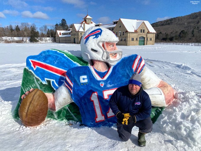 New York Artist Creates Massive Josh Allen Snow Sculpture